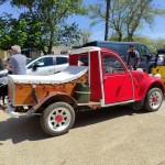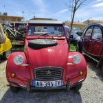 Et voici la dernière, celle qui a remporté tous nos suffrages: la 2CV grise, identique à celle des années 55. La peinture est d’origine. Les portes s’ouvrent à l’envers. Le siège avant est un peu défoncé. Purée! Tout y est! Il ne manque plus que la plaque d’ immatriculation: Non! je ne l’ai pas oubliée!