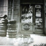 Plus bas, tu t’arrêtes devant chez le vulcanisateur, le « Rojo ». Une figure du village. Là, je me souviens du compresseur : un Bibendum Michelin dont le long tuyau terminé par un manomètre de gonflage sortait de la bouche. Quand il était allumé, il tremblait et faisait un bruit infernal.