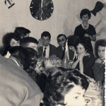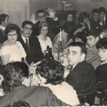 Devant la porte, sa fille Paulette accompagnée de ses amies Joujou SEMPÉRÉ, Olympe CALLAMAND, Paulette et Lucienne LAMBERT, Gisèle MACIA, paraissent bien animées. Elles projettent sûrement une sortie. Laissons-les à leurs papotages. Savez-vous que cette maison fut, dans les années 57-58, une crèche? C’est l’action Catholique, dirigée par madame BOUR et une trentaine de bénévoles, qui l’a créée et mise sur pied. En avançant un peu plus, nous voici devant la vieille maison de Joseph POVEDA, mon oncle. Nous l’avons habitée quelques temps. Elle est restée fermée jusqu’à …. ce 31 décembre 1959. Vous souvenez-vous du couvre-feu qui paralysait le village? Nous les jeunes, avions décidé avec l’aide de Sylviane et René mes cousins, de célébrer, malgré tout, la nouvelle année dans la salle à manger de la vieille maison. Il y a avait là : Eugénie, Norbert, Armande, Louis, Nadia, Blondine, Jocelyne, Michel, Josette, René, Sylviane, Jacques, Jadette, Odile, René, Chantal, Jean-Louis, Titou, Marie-Jo, Paul et d’autres dont les noms m’échappent. Que de souvenirs!!! Dès 8h du soir, jusque vers 6h du matin, plus personne dans les rues. Nous étions une vingtaine de copains enfermés, à enterrer l’année 59. C’était l’année du BIG BISOU, des PLATTERS, de GLORIA LASSO, de DALIDA, de Paul ANKA, de Harry BELAFONTE, de BILL HALEY…..et les cha-cha-cha, les mambos, les calypsos, les slows, les rock se succédaient. Les jupes, en tissus d’ameublement et fort juponnées, tournoyaient de plus belles! OUF!! Ça « crépite » dans ma tête! Un vrai feu d’artifice!!!!,!!! !!!