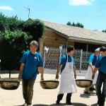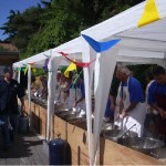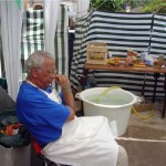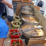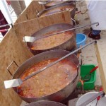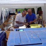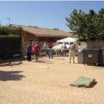 Dés l’entrée, de chaque côté de la porte, de grandes feuilles de palmiers et dans la salle des panneaux lumineux annonçaient que nous étions à RIO SALADO, ER RAHEL, TURGOT, Au plafond, un énorme ballon central d’ où partaient des guirlandes , des palmiers en pots disposés sur la scène et des bouquets de ballons finissaient la déco. Une équipe s’ activait autour des tables toujours préparées avec beaucoup de goût. Sur un pan de mur l’expo- photos. Cette année, l’expo nous « parlait » de la côte si pittoresque qui bordait la plaine du RIO SALADO. Une seule personne pouvait nous « raconter la mer »: Yvon LOZANO, un baroudeur qui dénotait chez nous. Il ne pêchait pas l’araignée, le peigne l’abadèche ou le mérou. Non, il photographiait les criques, les baies, les plages qu’il sillonnait tantôt sur « l’ HISPANIOLA « ou sur les « 7 FRÉRES« . Et c’est ainsi que ce pan de mur nous faisait découvrir ou redécouvrir cette côte méditerranéenne aux noms très imagés donnés par nos grands parents. N’allez surtout pas chercher sur une quelconque carte « BICHY L’AGUA« , « les CANIARETTES » ou « CHAPA la SALE« . Vous ne les trouverez pas. De père en fils, ces noms, nous étaient transmis. Ainsi vous aviez la possibilité de passer une journée dans une belle crique où se trouvait, scellée sur un rocher, une plaque en ciment qui vous informez que vous étiez à « L’HÔTEL des COURANTS d’ AIRS« . Dans les années 30, une bande de jeunes était venue passer la nuit afin de pêcher et de se régaler d’un bon repas entre copains. Mais la nuit fut si froide que la plage fut baptisée « Hôtel des Courants d’ airs. » Et au grès des photos vous continuiez le voyage sous un ciel d’été et une mer d’huile pour aborder PORTIJOL……..Tout ce périple présenté sur le mur de la salle, les noms des criques écrits sur des ardoises, agrémenté de photos, de commentaires, de coquillages et d’ objets insolites échappés de la tourmente comme cette cisaille en bois pourvue de mâchoires cloutées, qui servait à immobiliser l’araignée évitant ainsi les piqûres douloureuses. Ou ces boules de verres colorées des chaluts de BENISAF que la mer déchaînée rejetait sur le rivage.