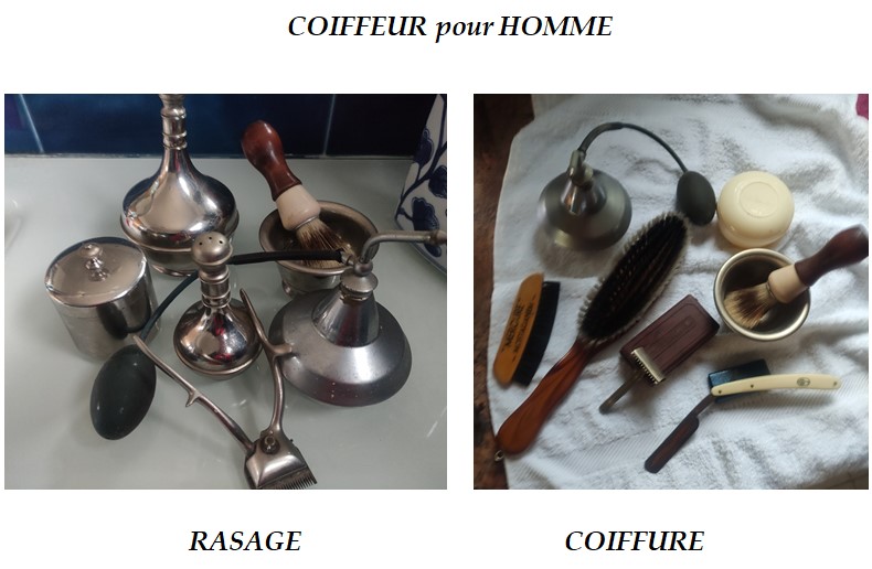 Il y avait là tout le matériel dont se servait mon voisin Antoine PEREZ, coiffeur pour messieurs ! Tient ?? « coiffeur pour messieurs » ! L’expression m’est venue naturellement. En effet, de nos jours, nous pouvons lire sur la porte d’un salon :
