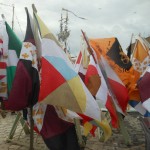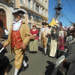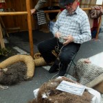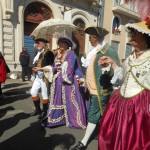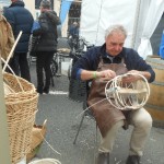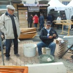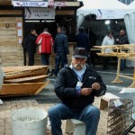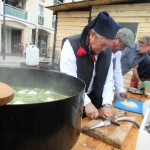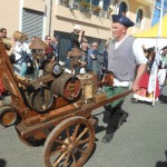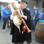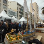 Quelques pas plus loin, en jouant des coudes, nous voilà chez les CROATES. Là, le bois est à l’ honneur et la musique aussi. Un aimable pêcheur nous explique, dans sa langue maternelle et avec force gestes, le parcours de cette maquette, réplique de la nacelle qui transportait les agrumes vers d’ autres cieux. Heureusement, le langage des mains, nous connaissons! Derrière le sympathique pêcheur, une équipe prépare une soupe, recette croate, que vous pouvez déguster si le coeur vous en dit, suivie d’un verre de bière de fabrication locale. Vue l’heure et la journée printanière en ce dimanche d’ avril, je vous le déconseille, nous n’avons pas fini notre excursion. Des musiciens et leur drôles de cornemuses nous accompagnent, ils sont originaires  d’ALESSANDRIA del POLINO de CALABRE, et cette drôle de cornemeuse est une ZAMPOGNA, un instrument antique dont l’outre est un sac en peau de chèvre, ou de brebis, et pour plus de renseignements le musicien s’appelle PINO. Voilà votre curiosité satisfaite. Nous continuons notre visite.