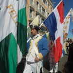 Attention! Écartez-vous! Les troupes du général La FAYETTE défilent au son des fifres et des tambours. Les étendards flottant au gré du vent.