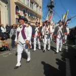 Au pied de l’ HERMIONE, le marquis de LA FAYETTE a établi son campement, et les échoppes des petits métiers de l’époque ont fleuri sur les bord des quais. Un soldat, peut-être gradé, raconte, à qui veut l’ entendre, les victoires du Général. Laissons-le charmer son auditoire etcontinuons notre visite. Je vous emmène faire une promenade dans des villages d’un autre temps.