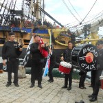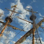 Et c’est l’ESPAGNE qui  nous reçoit. Ses deux bateaux sont à quai, le GALEON et le NAO VICTORIA. Des pirates accueillent les visiteurs au pied du  galion.