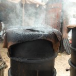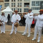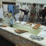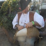 Tient! nous voilà en pays connu! Contrée méditerranéenne ou provençale. Le cabanon du pêcheur ou le mas provençal est là. Rien ne manque. Il y a même le lavoir. Une dame lave son linge en se servant de la planche à laver, du battoir et d’un gros cube de savon, fabrication artisanale. La lingerie des années 90 sèche un peu plus loin. A côté, la dentellière nous dévoile le secret de la dentelle aux fuseaux. Devant le cabanon, des pêcheurs en tricots rayés entraînent les promeneurs dans une joyeuse farandole. Laissons-les danser. Continuons notre visite en  allant voir ce pêcheur qui monte un filet de pêche. Jacques est ravi. Que de souvenirs! Un autre lui explique comment le teindre avec des écorces de pin qu’il débite en petits morceaux. Le troisième lui montre les techniques du remaillage. Aussitôt la conversation s’engage et chacun de nommer les causes possibles des trous dans le trémail. Plus loin, c’est un palangre que prépare ce pêcheur. Un autre termine une nasse et celui-ci fabrique une bouée, pardon! un pare-battage! Et, de liège en filet, nous voici à la corderie. L’artiste est à l’œuvre, mélangeant les couleurs, tressant une corde bien solide. Les pêcheurs amateurs sont aux anges! Cette visite se fait bien sûr au son des tambours et des hautbois. Un son qui ne nous est pas inconnu!